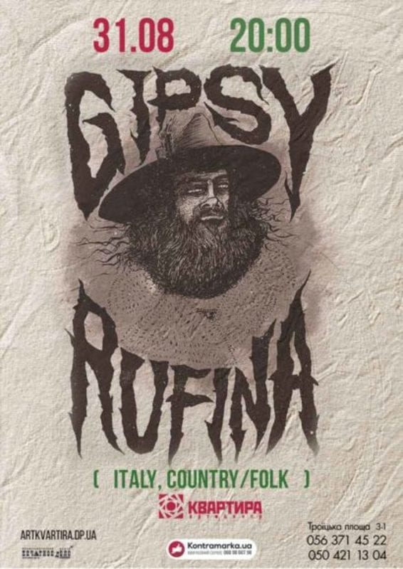 «Gipsy Rufina — автор песен, которые увлекают в путь. Прошагав километры дорог и проведя многие годы в плаваниях, он черпает вдохновение из собственной жизни — и слагает «песенные истории». Насыщенная атмосфера, которую он создает посредством голоса и гитары — теплая, глубокая, исполненная самоиронии и итальянской изюминки».