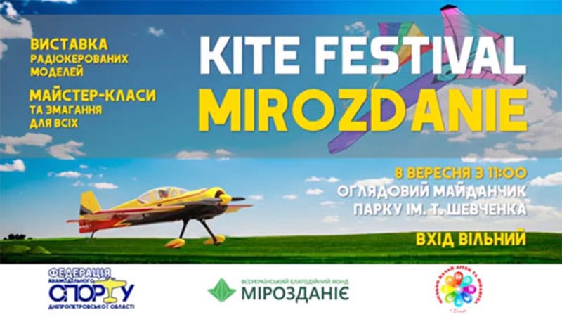 День Города! 8 сентября на смотровой площадке парка имени Шевченко фонд «Мироздание» организовывает фестиваль воздушных змеев и выставку радиоуправляемых авиамоделей.