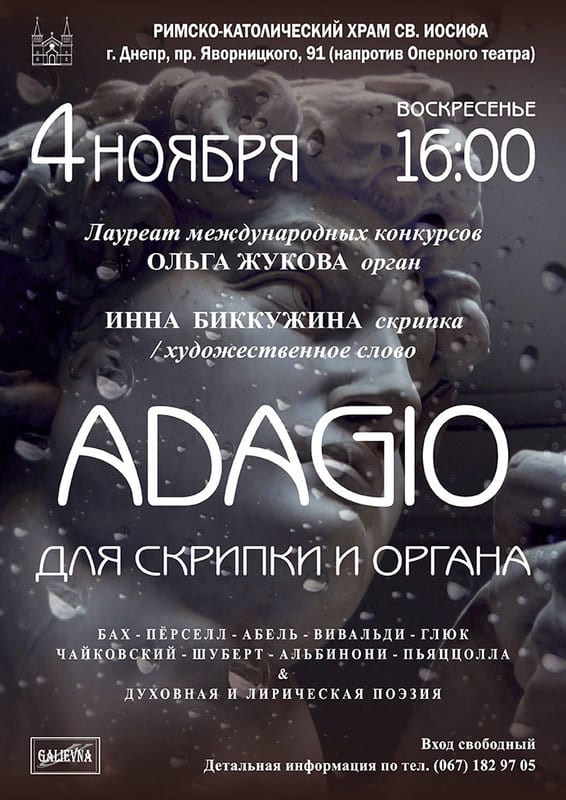 Программа концерта составлена музыкантами с особым вкусом. В начале концерта храм наполнится торжественным звучанием органной музыки Генделя. Яркими номерами концерта станут наполненное глубоким смыслом Адажио Альбинони и просто божественная по красоте Аве Мария Пьяццоллы. К каждому музыкальному произведению подобраны проникновенные духовные стихи. Этот концерт – чудесная возможность отдохнуть от суеты, подумать «а кто я?», «для чего на этой Земле?».