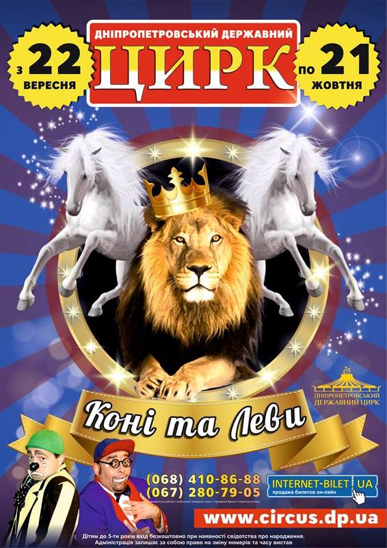 Звичайно, загальну увагу привернуть царі звірів – могутні Леви. Відомий дресирувальник створив довірчі відносини з левами. Хижаки сміливо стрибають крізь вогонь, танцюють, ходять на задніх лапах, але коли голова дресирувальника опиняється в пащі лева, глядач завмирає від страху. Цей номер – переможець міжнародних циркових фестивалів і учасник багатьох телепередач.