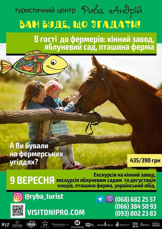 Запрошуємо всіх до найчистішого району Дніпропетровщини! Приготуйтесь до поєднання високих технологій і …фермерства. Ми дізнаємось, як і в яких умовах розводять відомих на весь світ спортивних коней та ознайомимося із тонкощами поетапного вирощування бройлерів. Окрім цього, ми завітаємо до найбільшого яблуневого саду області та розкриємо таємниці інтенсивного садівництва.