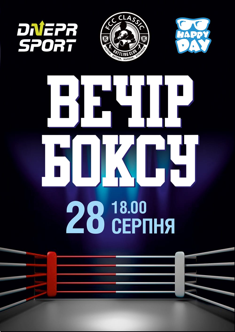28 серпня о 18-00 у аквапарку «Happy Day» (вул. Набережна Перемоги, 37Д) «Вечір боксу».