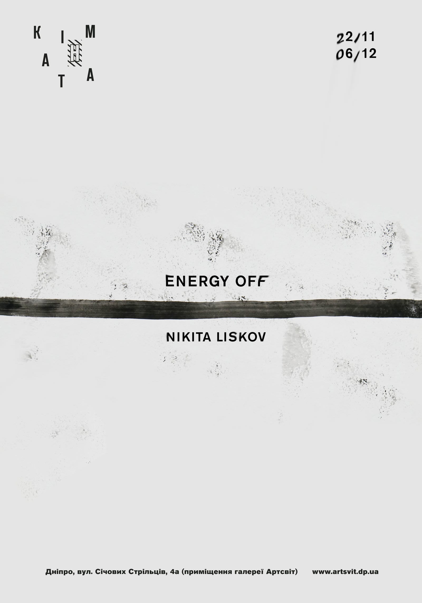 З 22 листопада в просторі Кімната буде предствалена анімаційна інсталяція Микити Лиськова “ENERGY OFF”. Інсталяція присвячена енергії, її народженню, її функціонуванню, її візуалізації. Приводом для створення анімації послужила композиція Bryan Eubanks і Jason Kahn “Energy (Off)”.