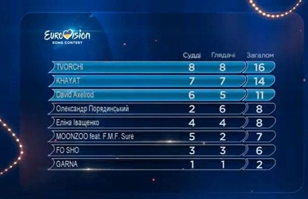 Во втором полуфинале Нацотбора на Евровидение-2020 победили David Axelrod, Khayat и Tvorchi.