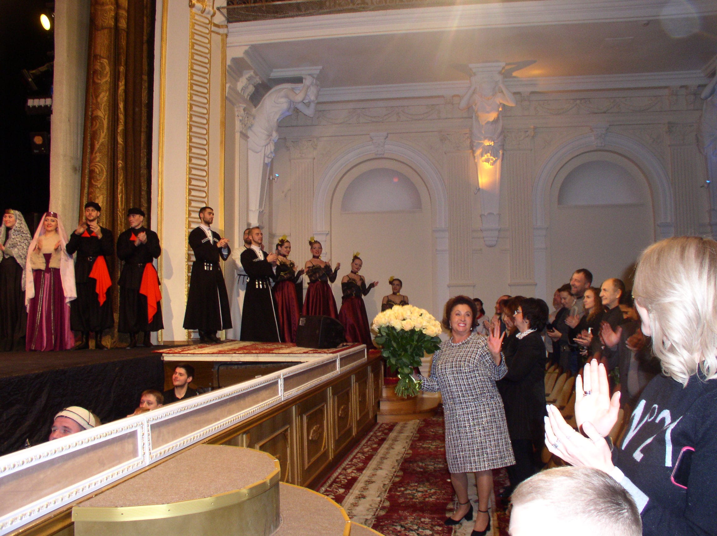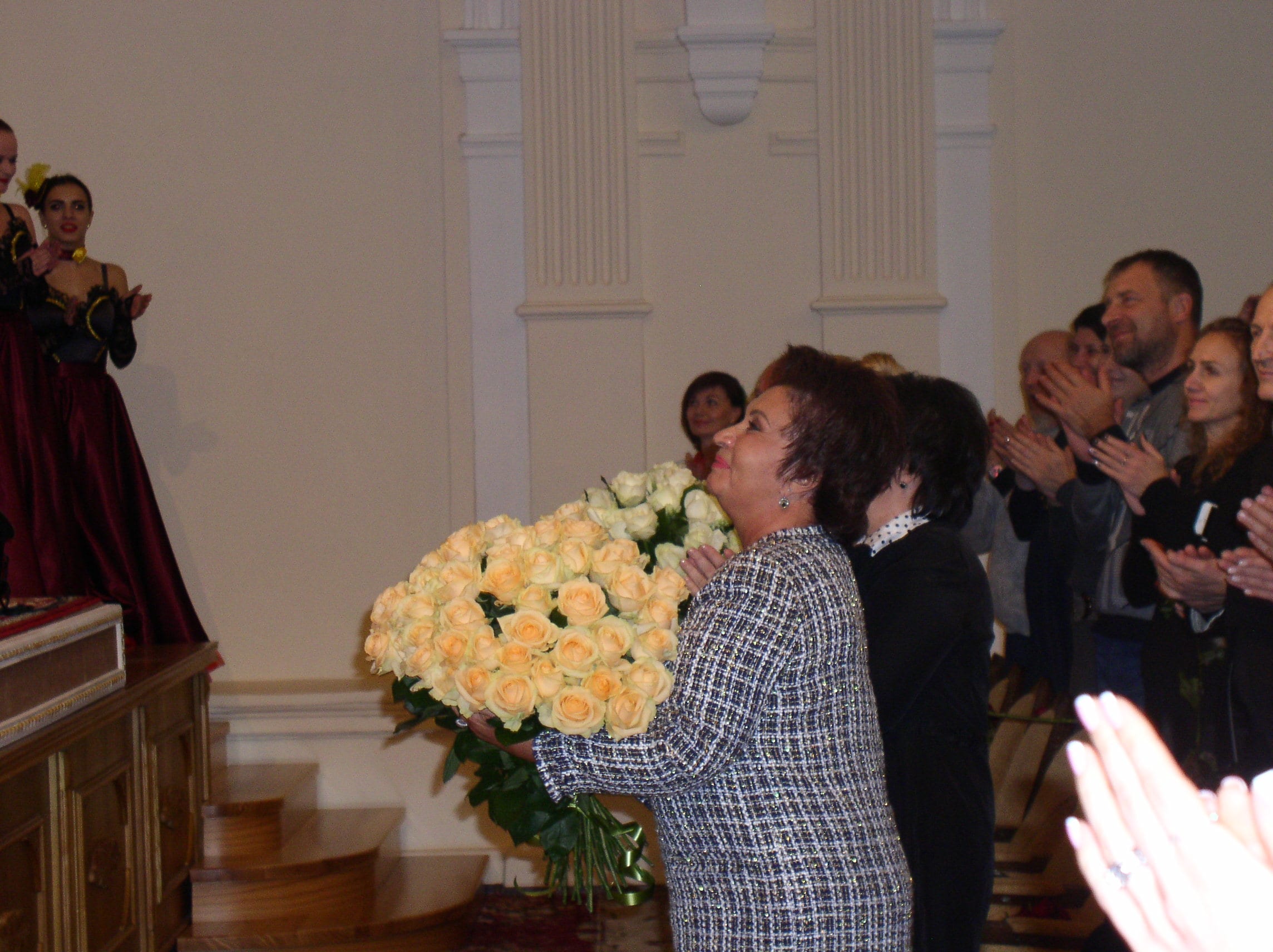 Среди публики на первом ряду особенно выделялась эффектная дама с огромным букетом бело-кремовых роз. Корреспондент «Афиши Днепра» узнала в ней Людмилу Заворотнюю – успешную днепровскую бизнес-леди, которая еще много лет назад, будучи директором ресторана «Пламя», подружилась с примой советской эстрады Аллой Пугачевой. Теплые отношения с Примадонной она поддерживала на протяжении многих лет. Розы Людмила Николаевна подарила режиссеру